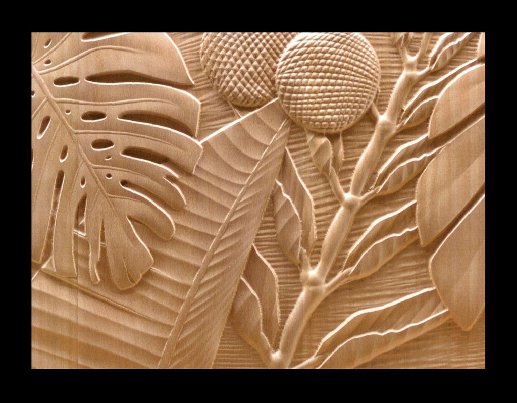 Celebrate Tropical Beauty with lush Carved Cabinet Doors.
